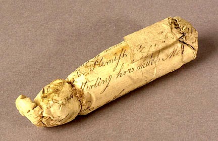 show in the image, a paper cartridge would be rolled around a dowel and ball. With the ball end folded and securely affixed